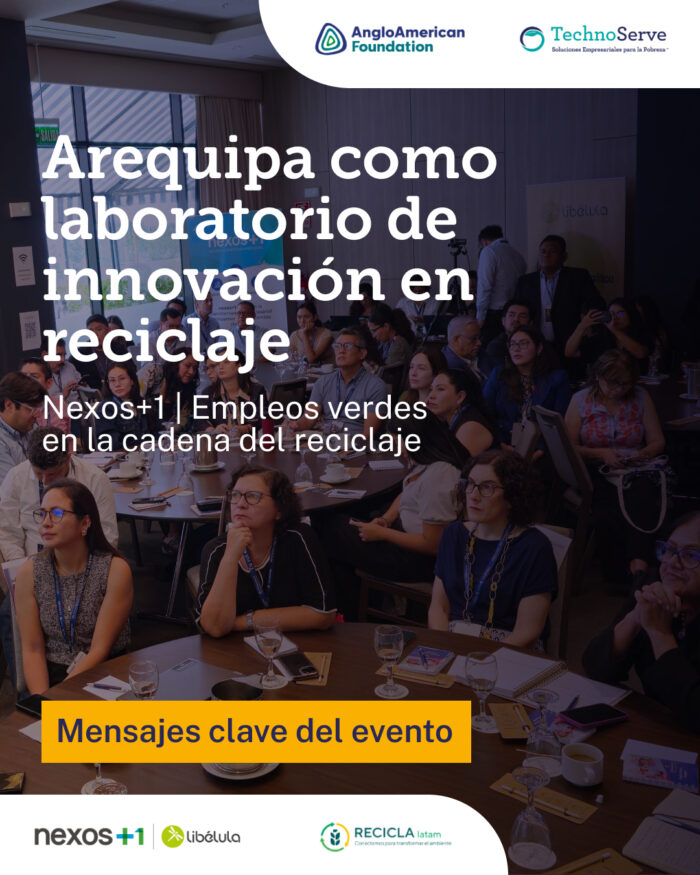El proyecto Empleos Verdes Arequipa, impulsado por TechnoServe y Anglo American Foundation, nace para cerrar esa brecha mediante asistencia técnica, fortalecimiento empresarial y coordinación territorial, conectando a recicladores, empresas, municipalidades y otros actores del ecosistema para que la valorización de residuos funcione como una verdadera cadena productiva.